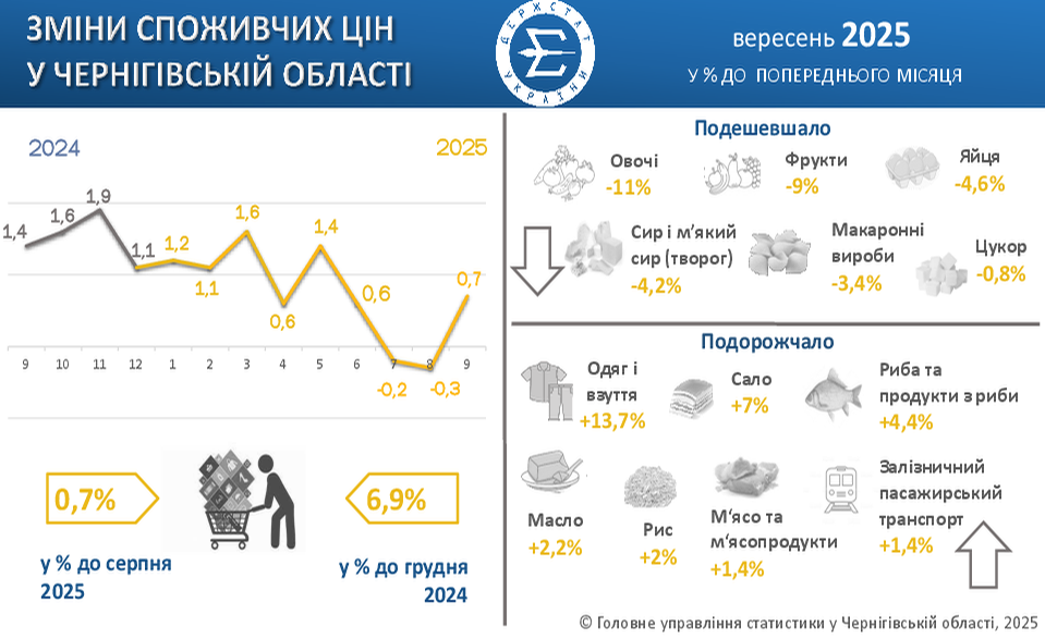 Індекс споживчих цін у Чернігівській області в вересні 2025 року