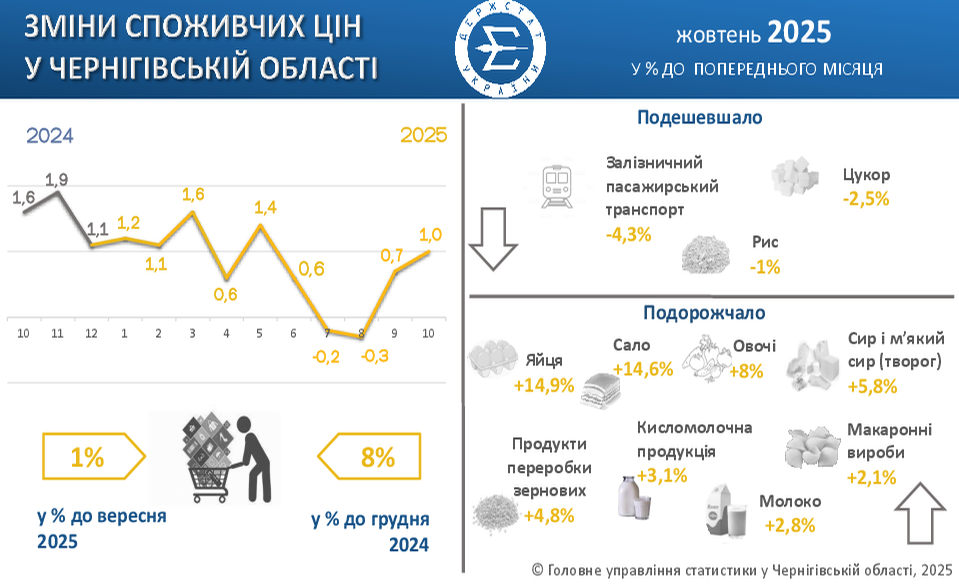 Індекс споживчих цін у Чернігівській області у жовтні 2025 року