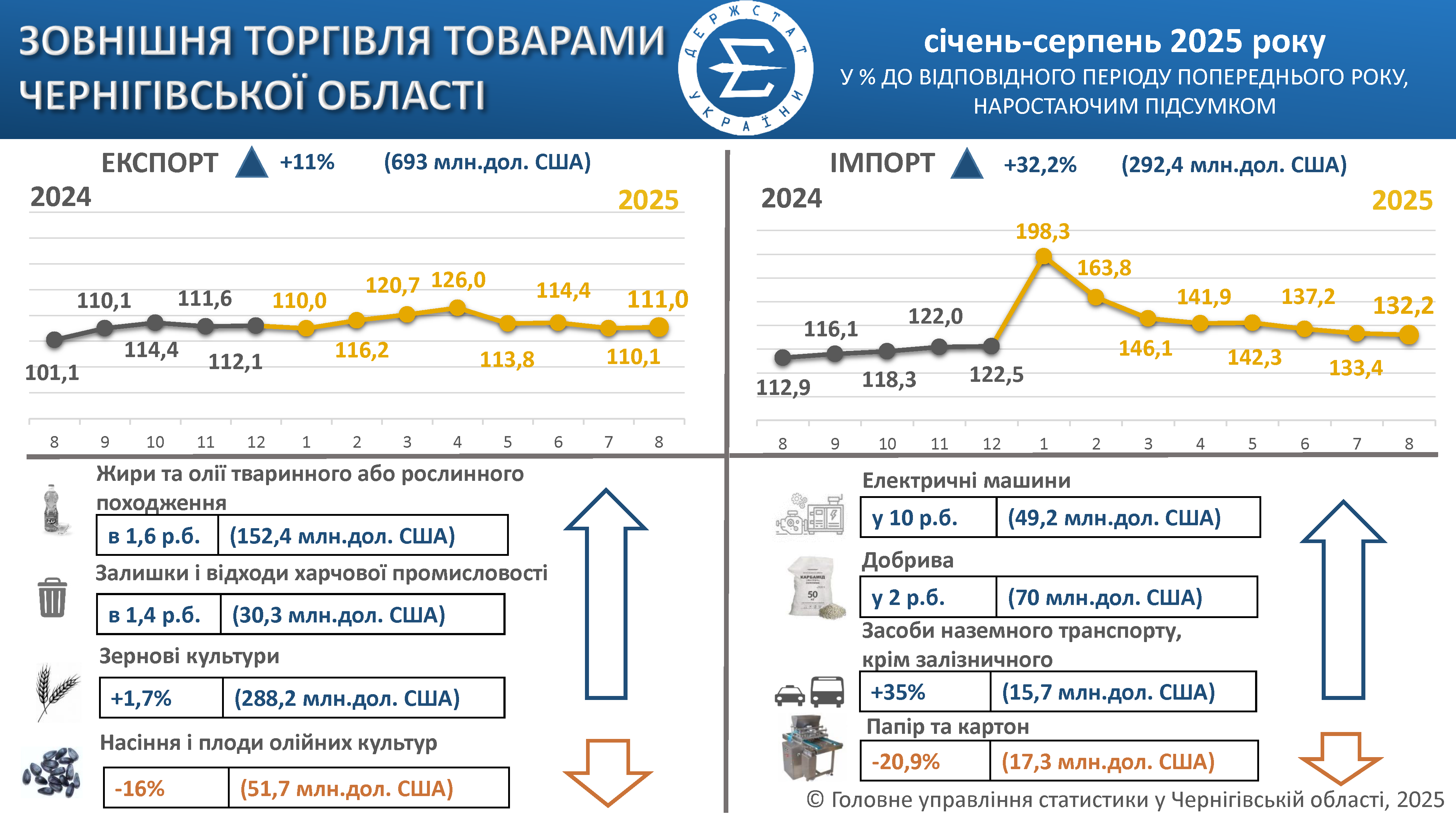 Зовнішня торгівля товарами Чернігівської області за січень–серпень 2025 року