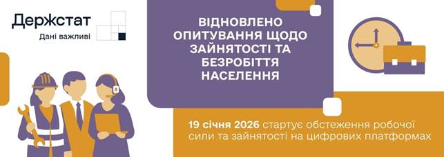«У грудні 2025 року ми відновили опитування населення, розпочавши з обстеження бюджетів домогосподарств. У січні 2026-го переходимо до наступного важливого етапу – обстеження робочої сили. За кожною відповіддю – реальний досвід українців, і саме з цих відповідей складається розуміння того, як змінилася активність людей на ринку праці у різних регіонах. Ми вдячні родинам, які долучаться до опитування, адже їхня участь допоможе визначити, де підтримка потрібна найбільше і які зважені рішення уряду щодо соціально-економічного розвитку країни та регіонів мають бути пріоритетними».