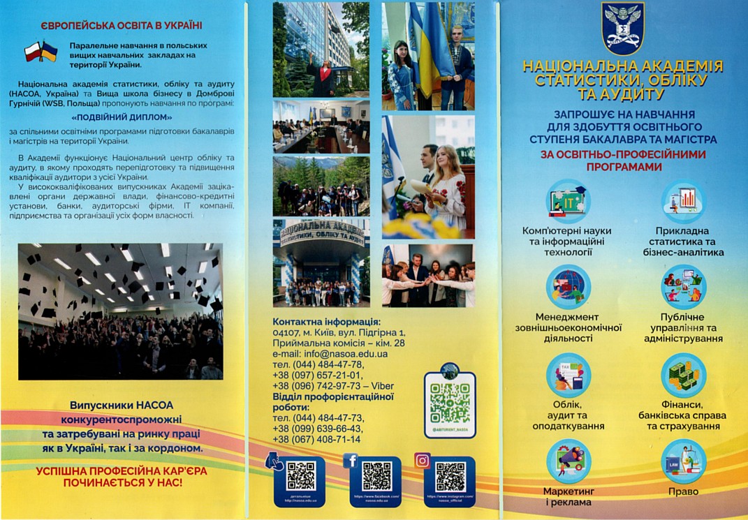 Національна академія статистики, обліку та аудиту здійснює набір на навчання здобувачів вищої освіти