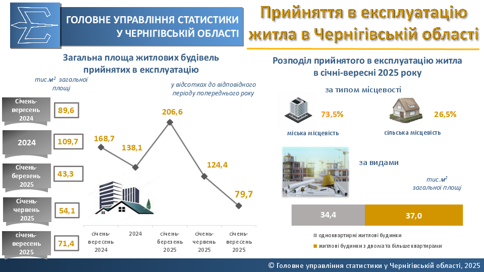 Прийняття в експлуатацію житла у Чернігівській області в січні-вересні 2025 року