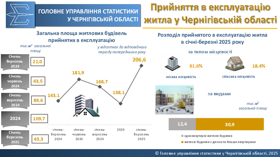 Прийняття в експлуатацію житла у Чернігівській області в 2024 році