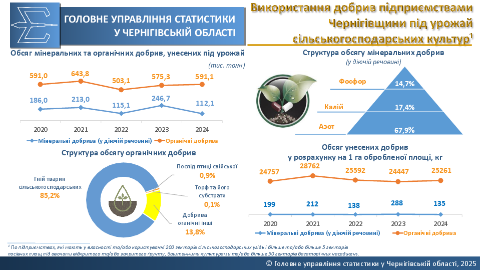 Використання добрив підприємствами Чернігівщини під урожай сільськогосподарських культур