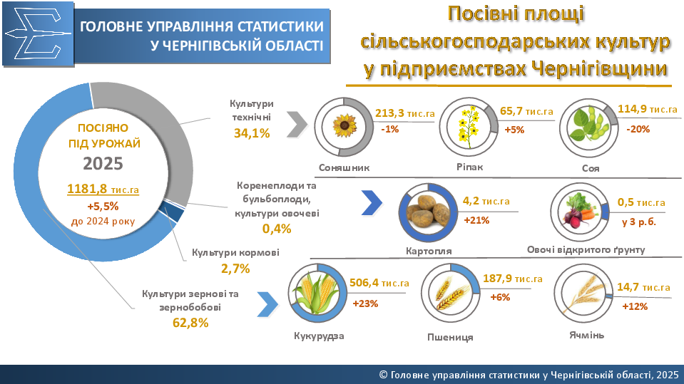 Посівні площі сільскогосподарських культур у підприємствах Чернігівщини