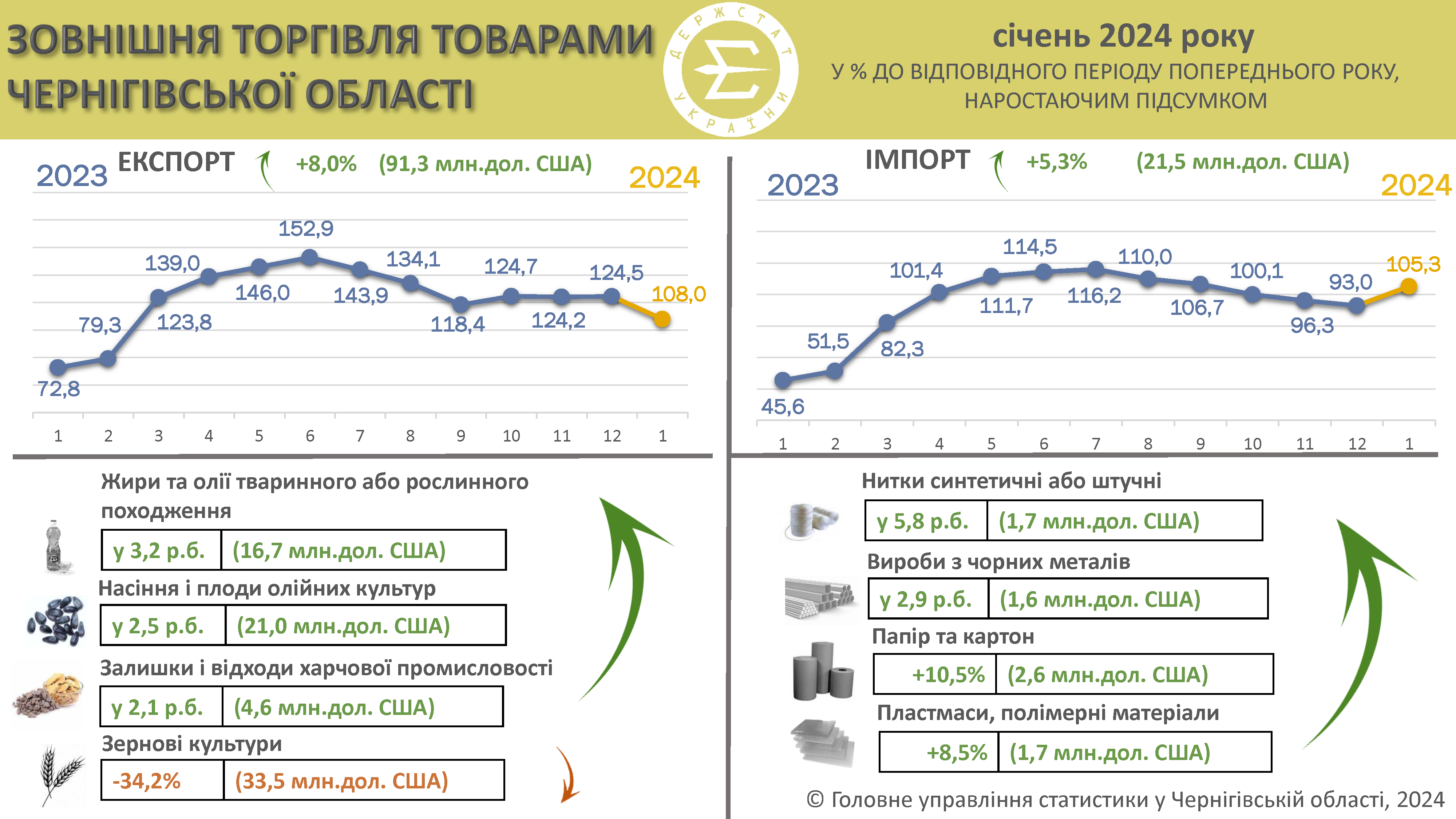 Зовнішня торгівля товарами Чернігівської області в січні 2024 року
