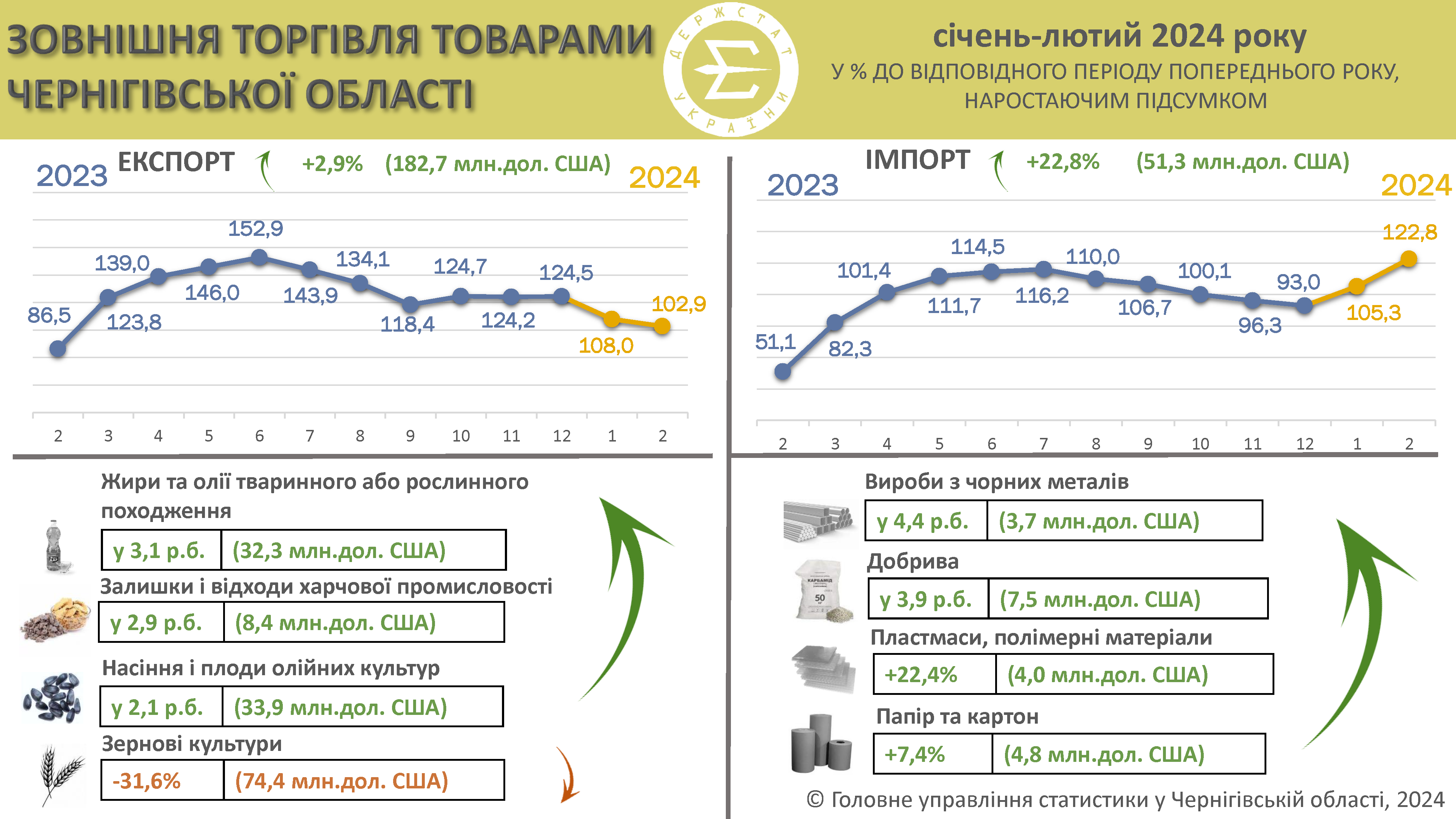 Зовнішня торгівля товарами Чернігівської області в січні-лютому 2024 року