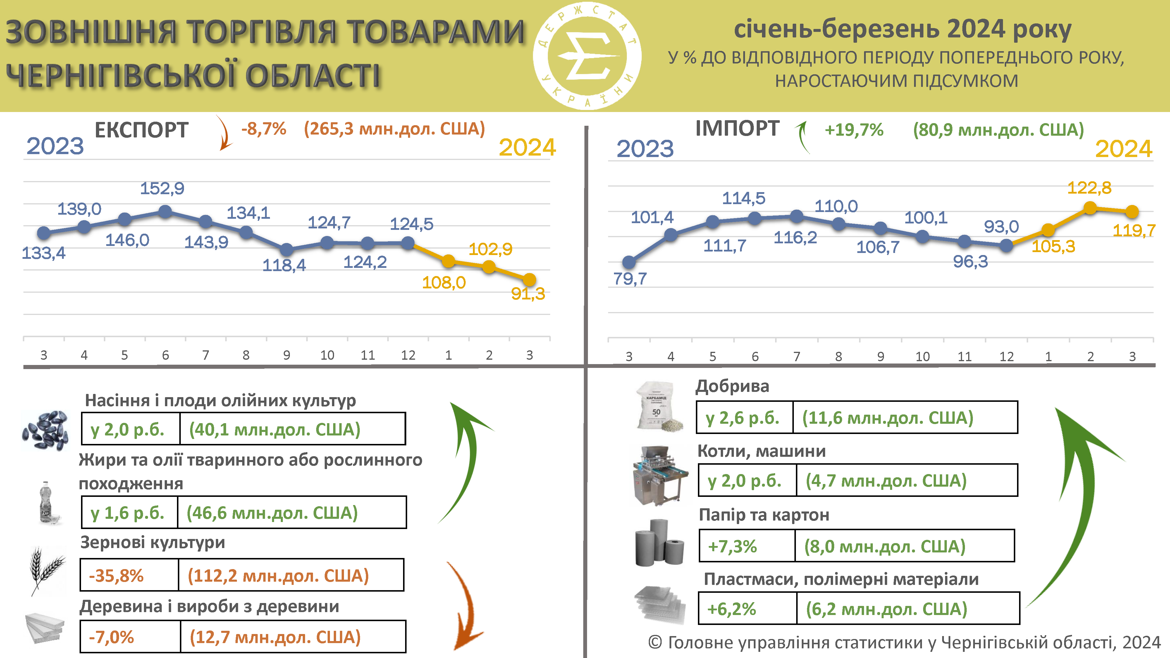 Зовнішня торгівля товарами Чернігівської області в січні-березні 2024 року