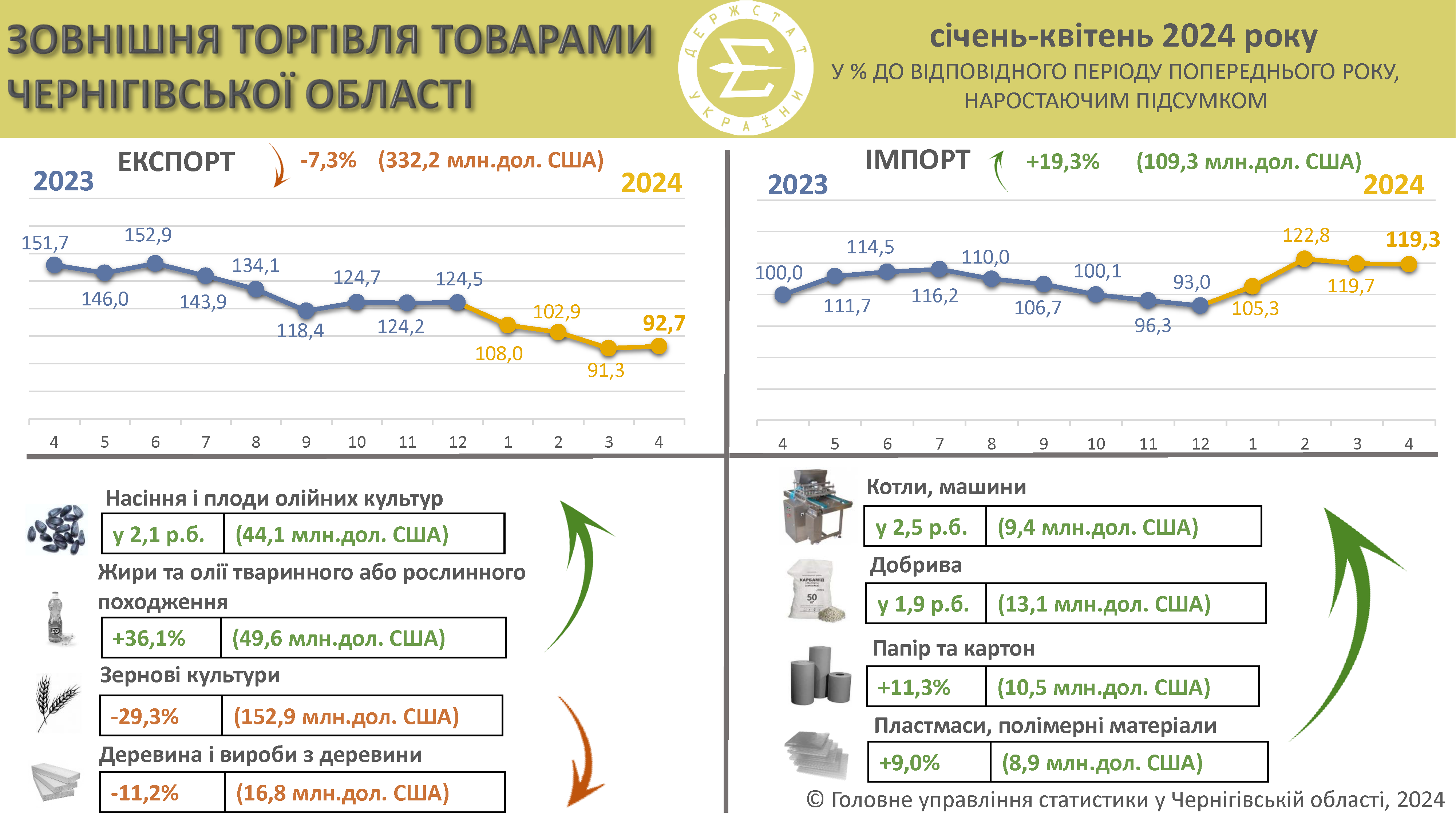 Зовнішня торгівля товарами Чернігівської області в січні-квітні 2024 року