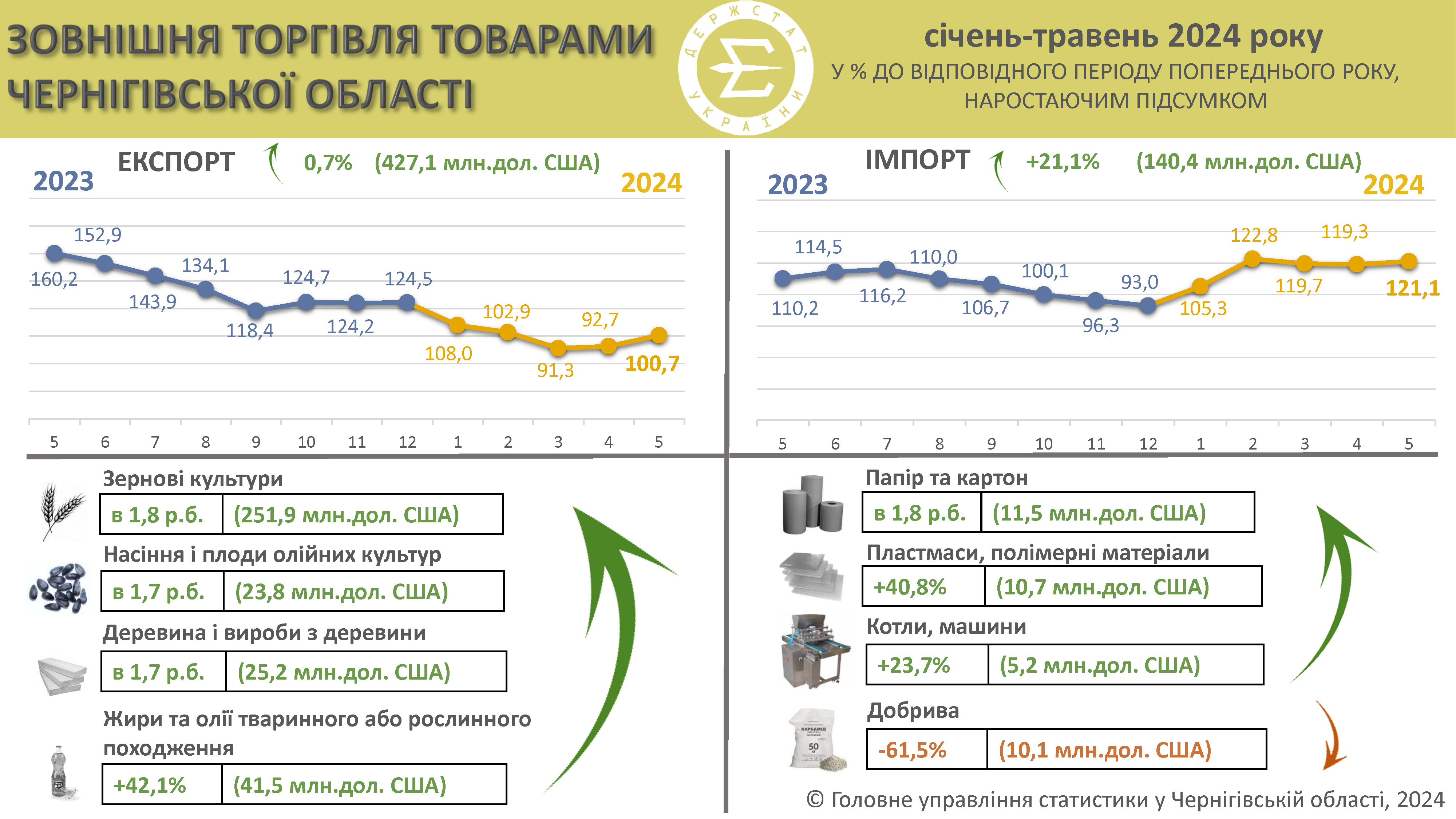 Зовнішня торгівля товарами Чернігівської області в січні-травні 2024 року