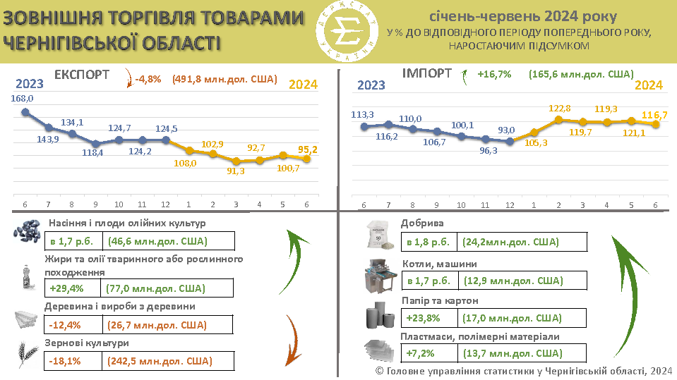 Зовнішня торгівля товарами Чернігівської області в січні-червні 2024 року