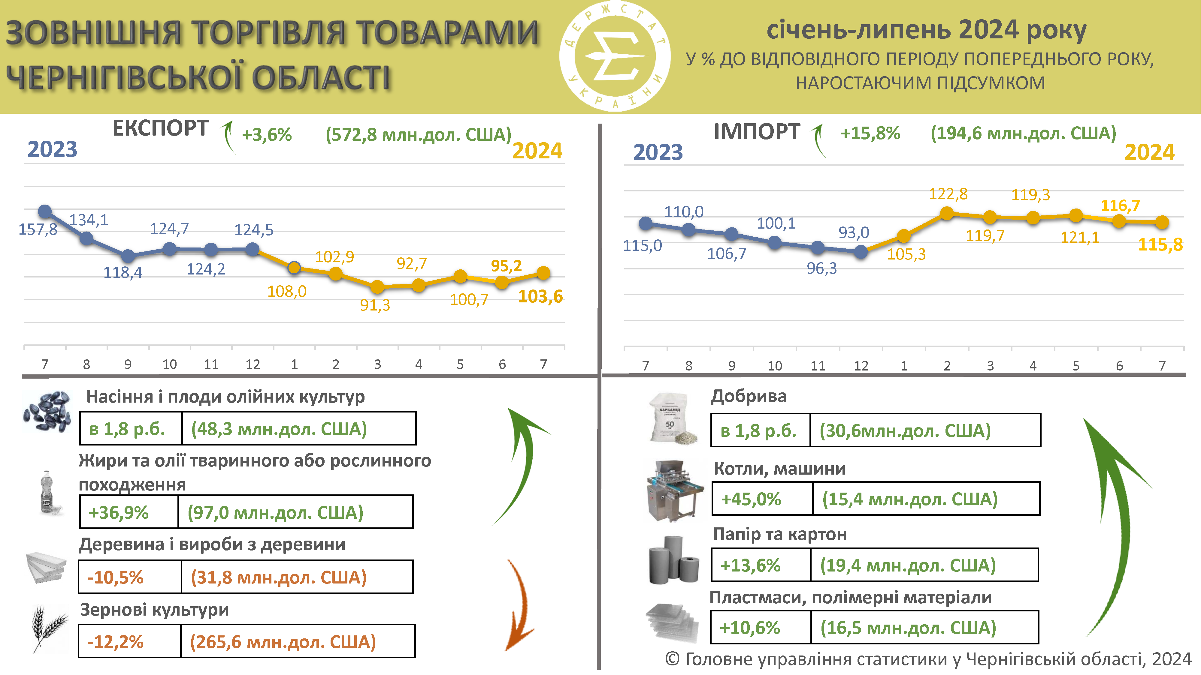 Зовнішня торгівля товарами Чернігівської області в січні-липні 2024 року