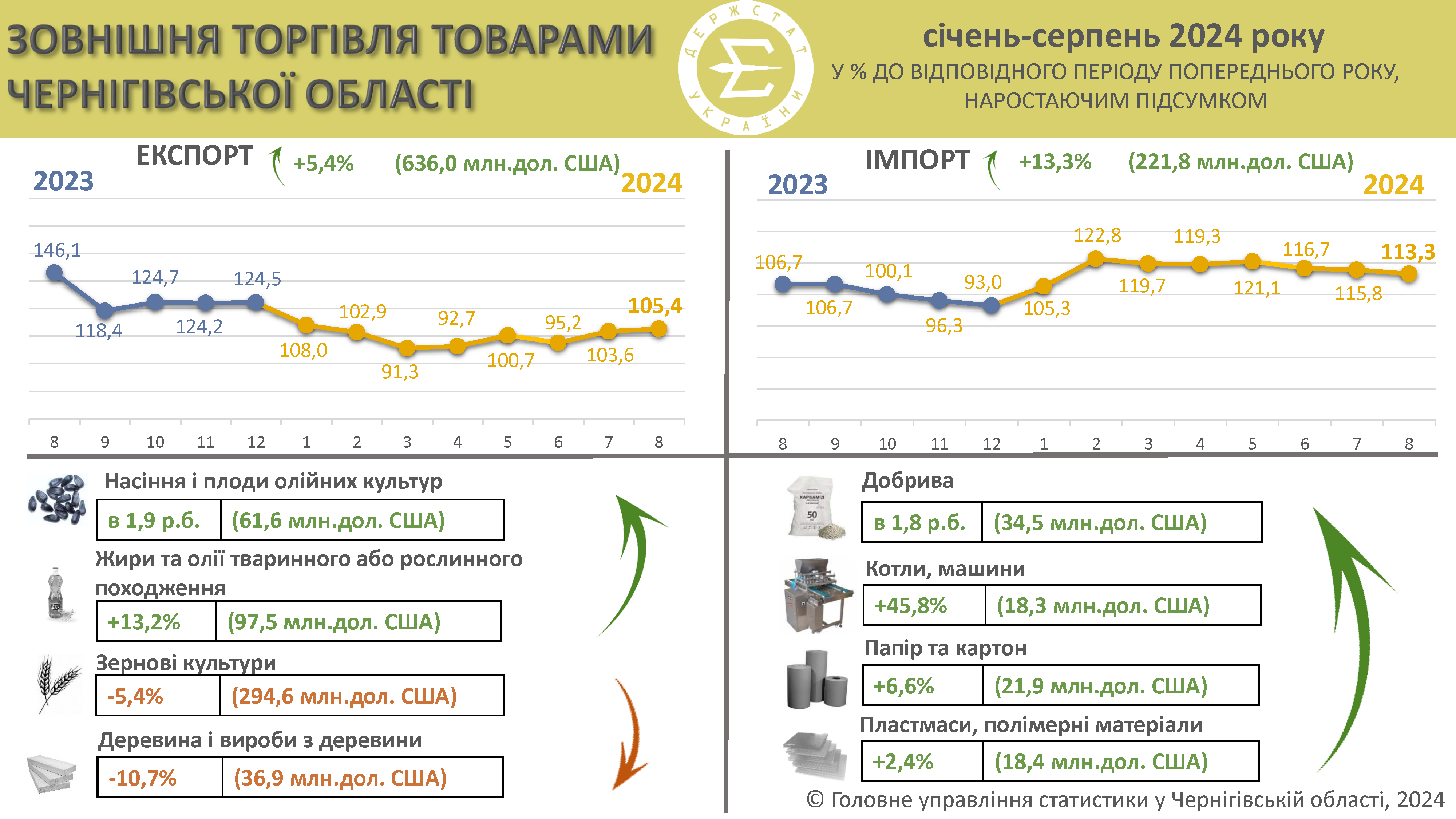 Зовнішня торгівля товарами Чернігівської області в січні-серпні 2024 року