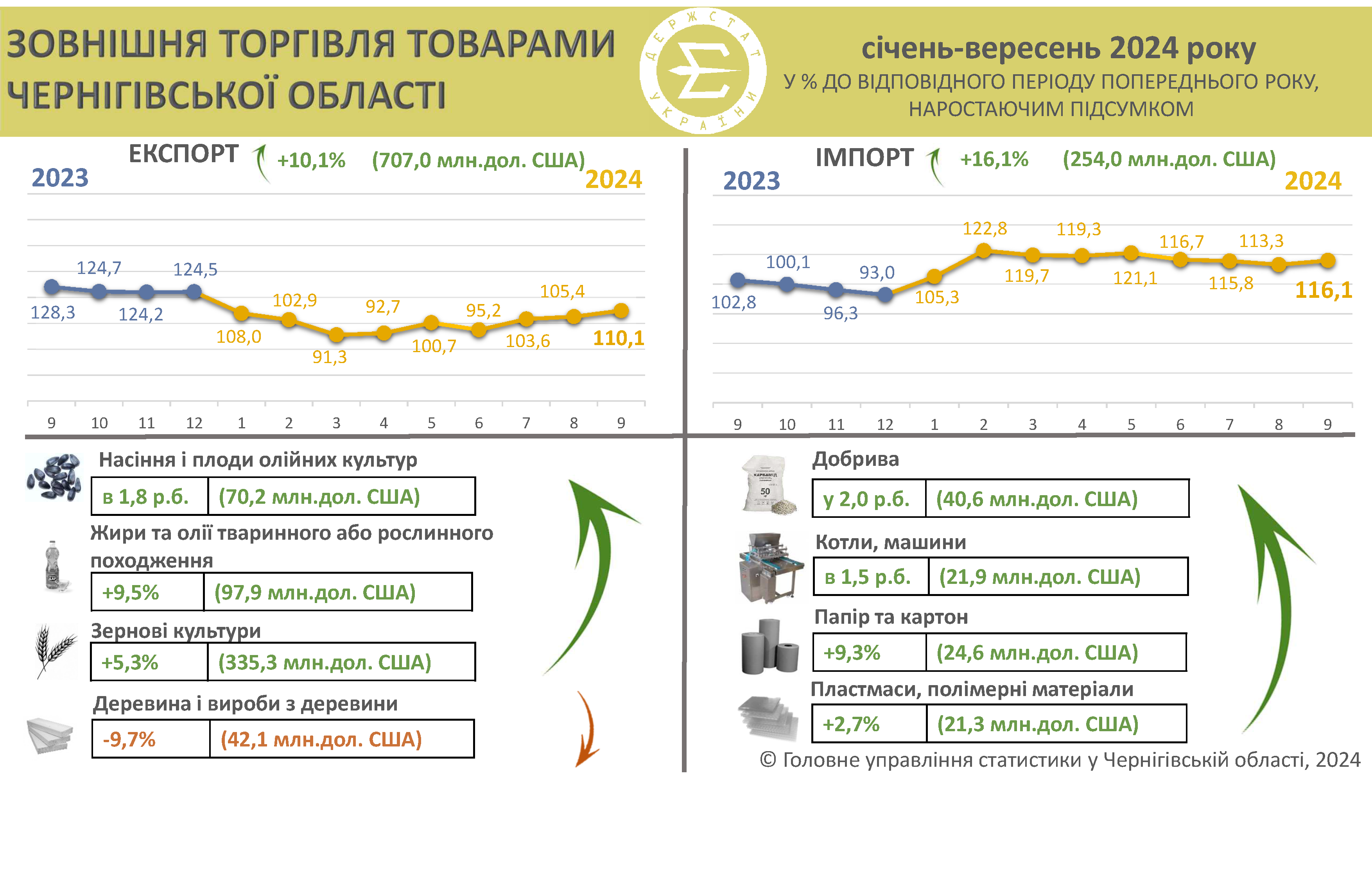 Зовнішня торгівля товарами Чернігівської області в січні-вересні 2024 року