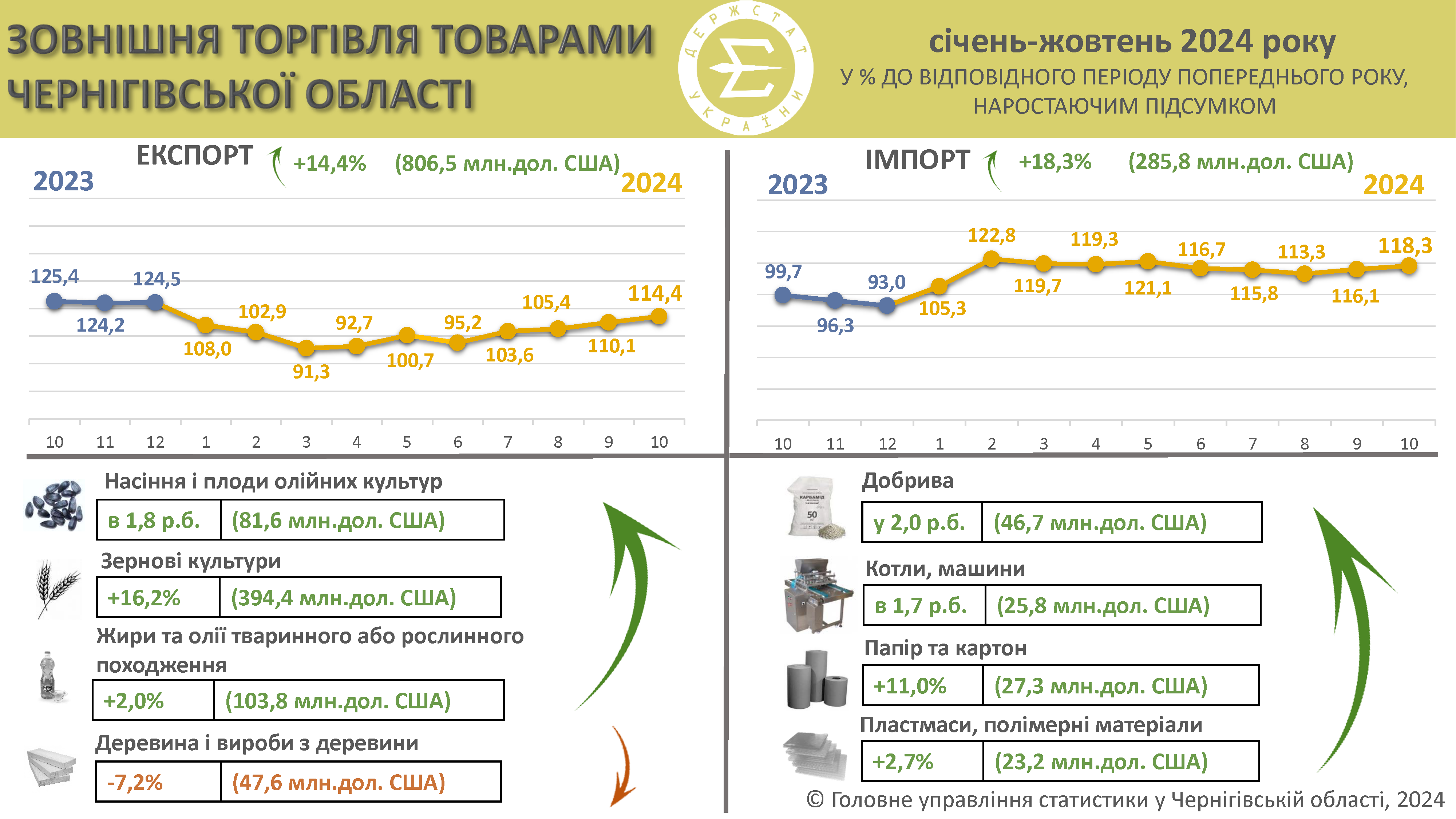 Зовнішня торгівля товарами Чернігівської області в січні-жовтні 2024 року