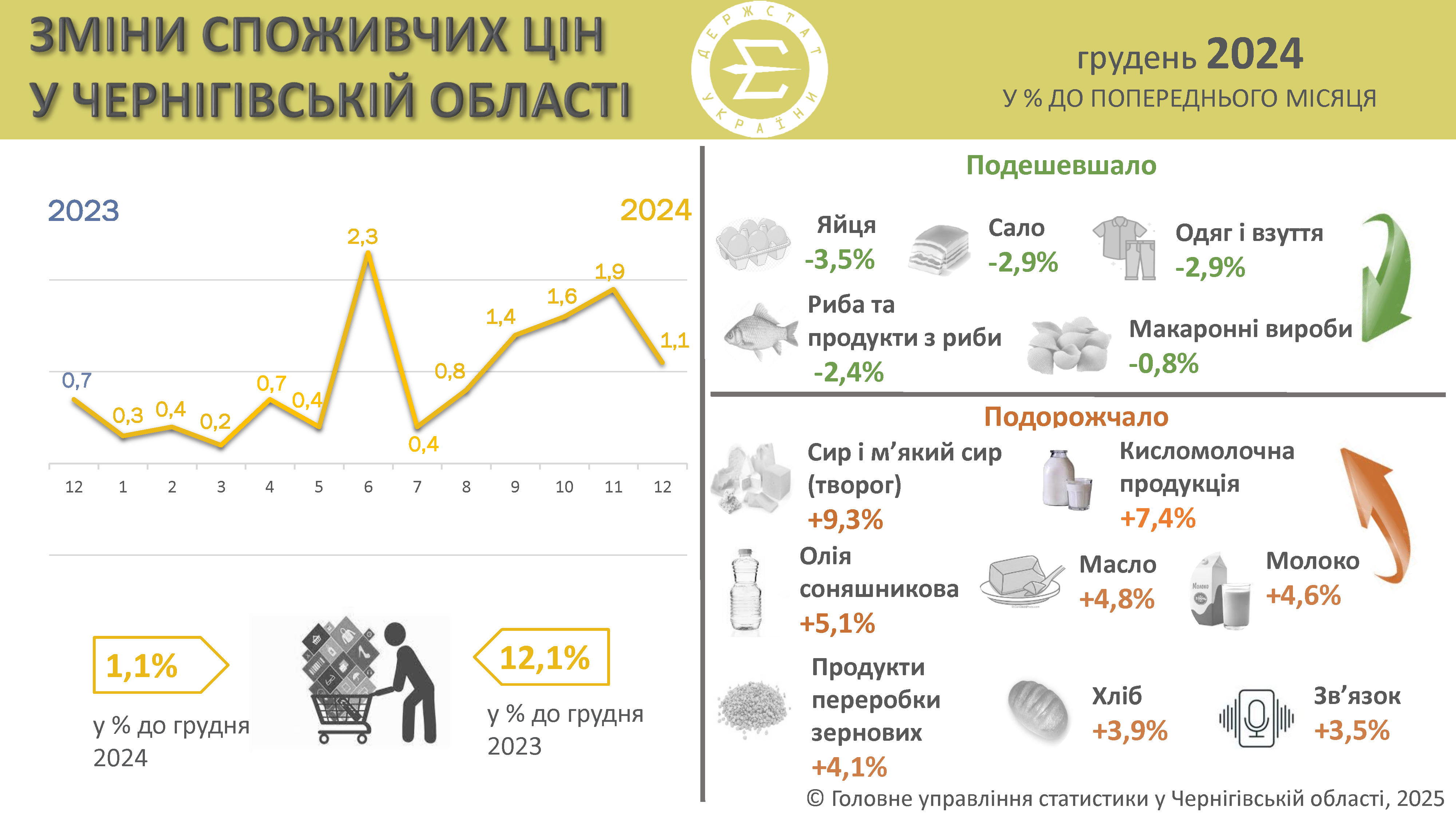 Індекс споживчих цін у Чернігівській області в грудні 2024 року
