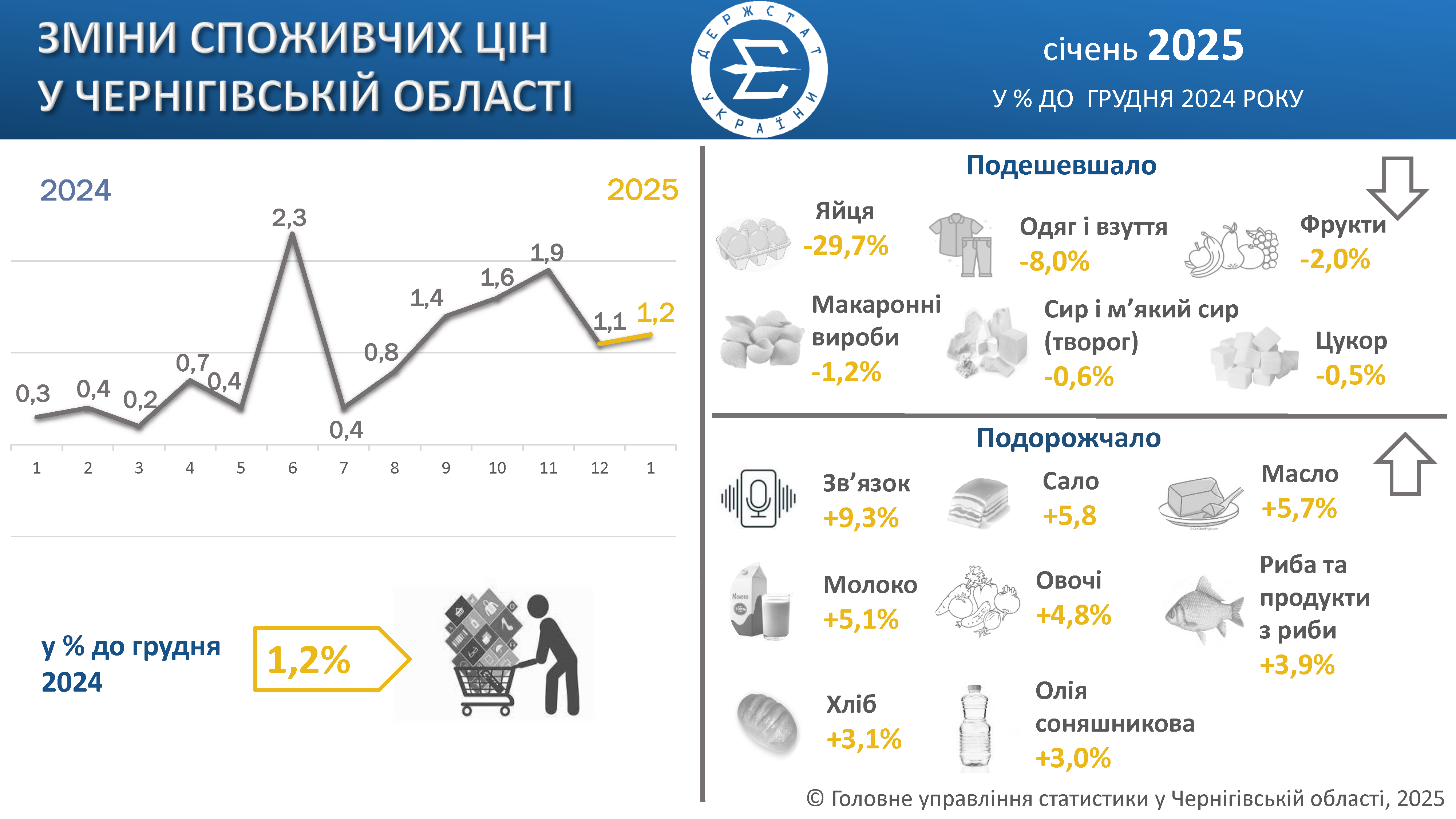 Індекс споживчих цін у Чернігівській області в січні 2025 року