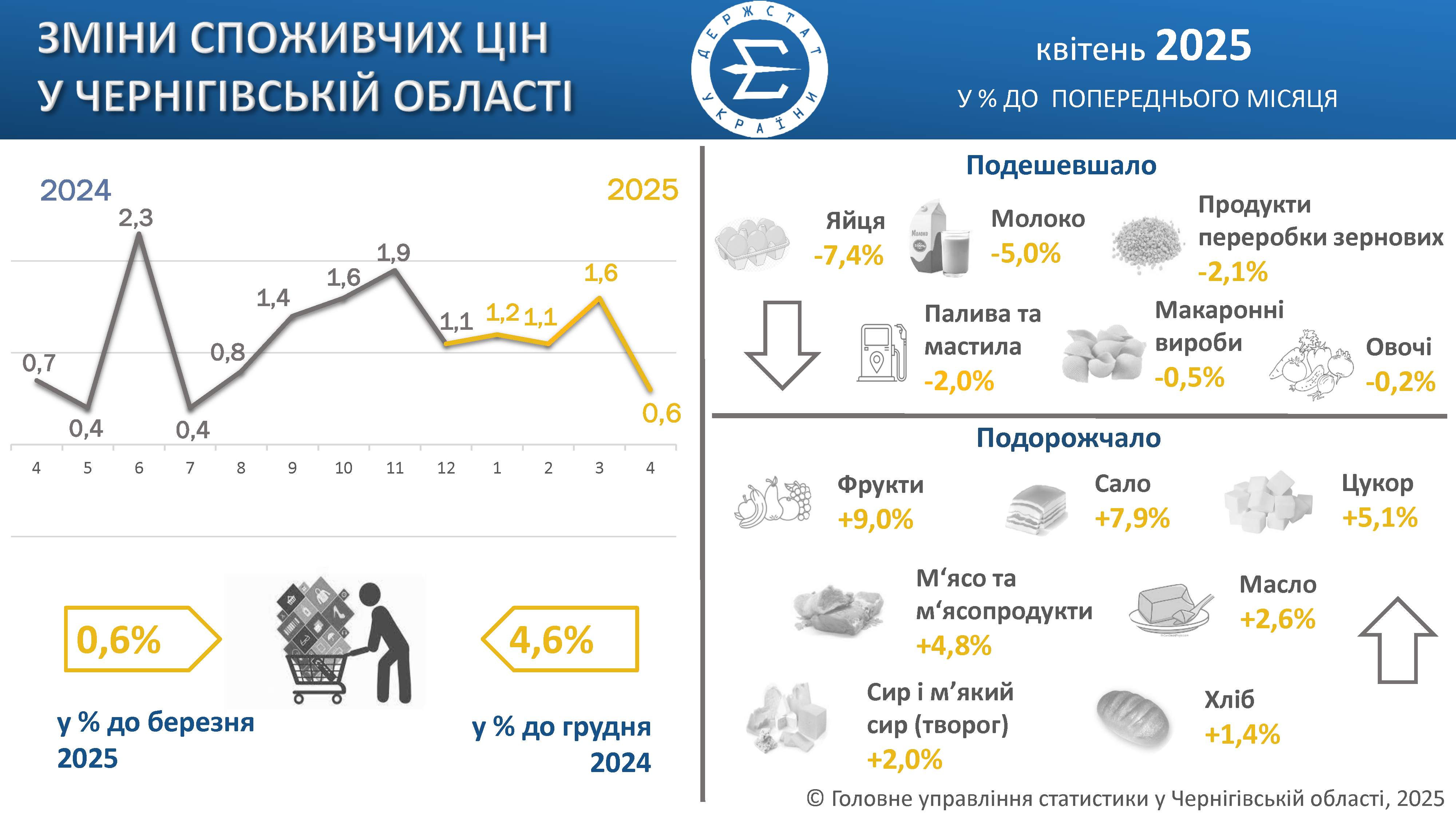 Індекс споживчих цін у Чернігівській області в березні 2025 року