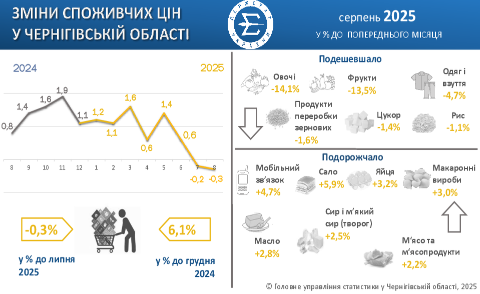 Індекс споживчих цін у Чернігівській області в вересні 2025 року