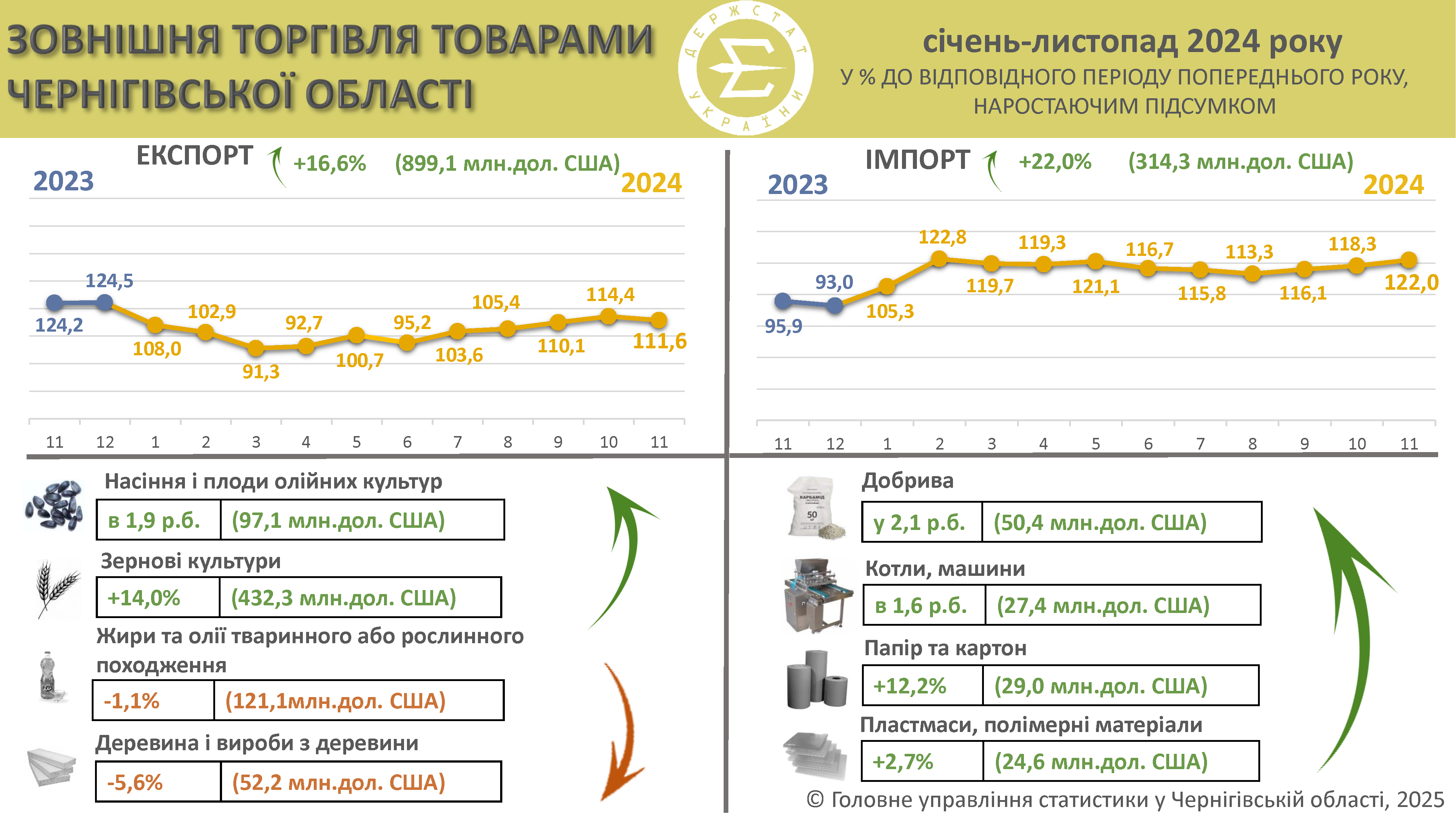 Зовнішня торгівля товарами Чернігівської області за січень-листопад 2024 року