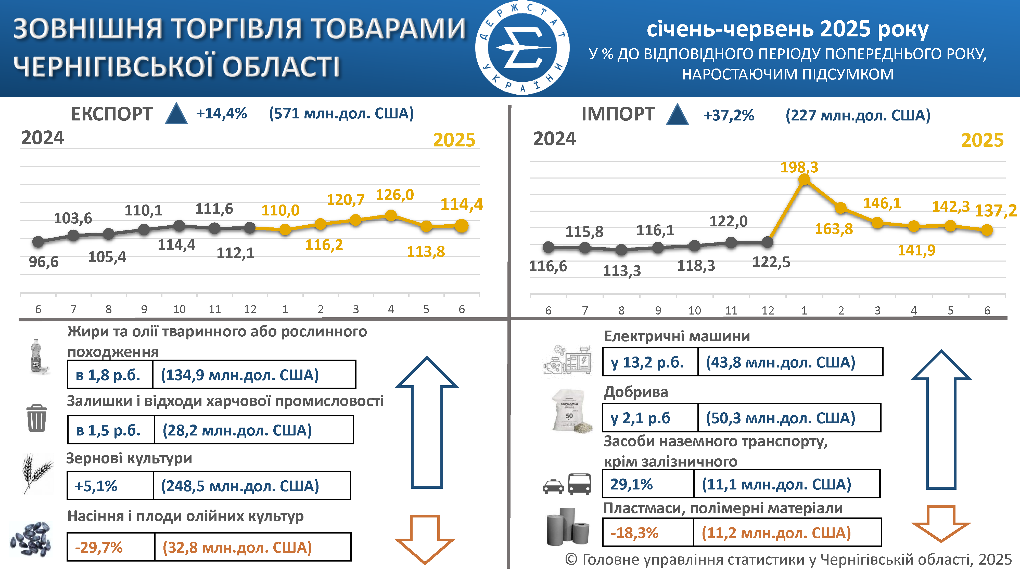Зовнішня торгівля товарами Чернігівської області за січень–серпень 2025 року