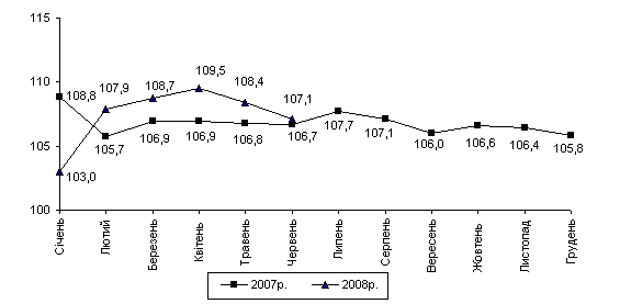 Індекс цін виробників промислової продукції в І півріччі 2008р. становив 121,9%.