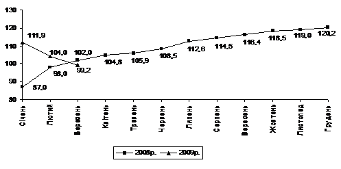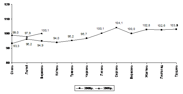 ПРОМИСЛОВІСТЬВиробництво промислової продукції в І кварталі 2009р. становило 80,3% відносно рівня відповідного періоду минулого року. У добувній промисловості темпи обсягів продукції становили 97,7%. Збільшився видобуток сирої нафти. При цьому скоротився видобуток природного газу, крейди, пісків природних. У переробній промисловості виробництво продукції, порівняно з відповідним періодом 2008р., становило 69,2%. На підприємствах із виробництва харчових продуктів, напоїв та тютюнових виробів темпи обсягів продукції становили 89,6%. На 368 т зріс випуск жирних сирів, на 231 т - м'яса і субпродуктів харчових свійської птиці, свіжих чи охолоджених, на 153 т - кисломолочних продуктів, на 199 т - обробленого рідкого молока. Водночас менше вироблено борошна пшеничного та житнього, яловичини й телятини свіжих чи охолоджених, нерафінованої соняшникової олії, вершкового масла, ковбасних виробів. У легкій промисловості обсяги виробництва до відповідного періоду минулого року становили 37,4%. Зменшилося виробництво тканин, взуття, зовсім не вироблявся льон розволокнений, водночас, зросло виробництво постільної білизни, ковдр та пледів. В обробленні деревини та виробництві виробів із деревини темпи обсягів продукції становили 61,4%. Скоротилося виробництво деревини уздовж розпиляної чи розколотої, паркету з деревини листяних порід, панелей дерев'яних, тари дерев'яної, піддонів дерев'яних. На підприємствах целюлозно-паперового виробництва та видавничої діяльності обсяги продукції становили 74,3%. Менше вироблено шпалер, етикеток та ярликів із паперу та картону, надруковано газет, книг та календарів, натомість більше надруковано журналів. У хімічній промисловості виробництво продукції становило 28,8% до рівня відповідного періоду минулого року. Менше вироблено волокон хімічних, пластмас у первинних формах, фарб та лаків на основі полімерів, засобів миючих та для чищення, шампунів, штучних оболонок із затверділих протеїнів. На підприємствах із виробництва іншої неметалевої мінеральної продукції темпи обсягів продукції становили 28,1%. Виробництво елементів конструкцій збірних для будівництва з цементу, бетону чи штучного каменю зменшилося на 10,8 тис.м3, керамічної невогнетривкої цегли - на 10,8 млн.шт. умовної цегли. У металургійному виробництві та виробництві готових металевих виробів темпи обсягів становили 32,2%. Виробництво котлів центрального опалення скоротилося на 1,5 тис.шт., різних видів металевих конструкцій - на 1,3 тис.т, менше вироблено металевих резервуарів та цистерн, сейфів. На підприємствах машинобудування виробництво продукції становило 45,6% рівня відповідного періоду минулого року. Зросло виробництво машин пожежних, відцентрових насосів, низьковольтної електричної апаратури, устатковання для фільтрування та очищення рідин. При цьому менше вироблено машин для оброблення гуми або пластмас, верстатів для оброблення дерева, вогнегасників. Зовсім не вироблялися автобуси, вакуумні насоси, годинники. У виробництві та розподіленні електроенергії темпи обсягів продукції становили 100,6%. Зросло виробництво електроенергії, але менше вироблено теплоенергії. Упродовж січня-лютого промисловими підприємствами області реалізовано промислової продукції на суму 1,3 млрд.грн. В обсязі продукції, реалізованої підприємствами добувної та переробної пром