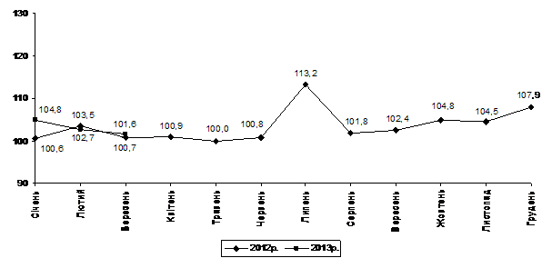 січень–березень 2013р. проти січня–березня 2012р. збільшився на 5,4% і становив